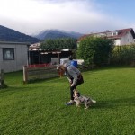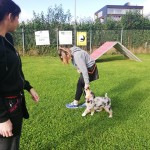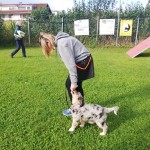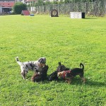 Weiters übten wir das zur Ruhe kommen auf einer Decke und die Welpen durften in zwei Gruppen-aufgeteilt nach Energieniveau- miteinander spielen ![]()
