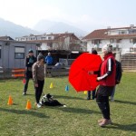 Geräusche-Desensibilisierung machten wir heute auch-wir übten, dass es nichts Besonderes ist, wenn man einen Schirm aufspannt oder wenn eine Alu Futterschüssel oder ein Kochtopf runterfällt.