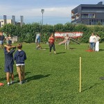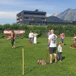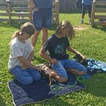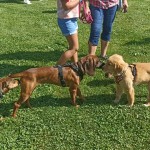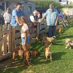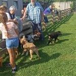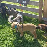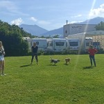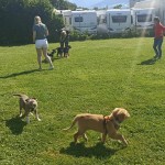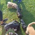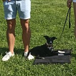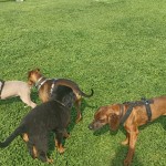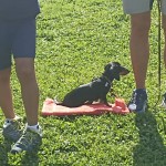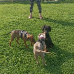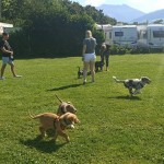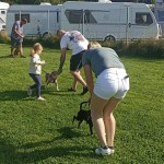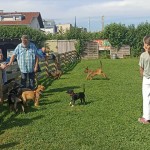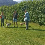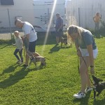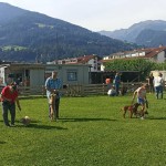Wir machten verschiedene Übungen, Führung geben während Kinder vorbeilaufen, wir übten das Fußgehen, zweimal durften die Welpen aufgeteilt nach Größe und Energieniveau miteinander-kontrolliert von uns Trainern-spielen. Und wir besprachen das Thema Maulkorb und wir übten erste Schritte zur positiven Gewöhnung an den Maulkorb.