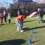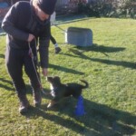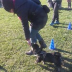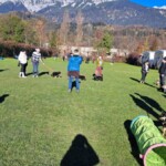 Eine bunt gemischte Welpengruppe, sehr motivierte Welpenführer und ein paar Kinder waren mit dabei, die wir gleich als Ablenkung eingebaut haben-der Welpe muss sich zurücknehmen, wenn die Kinder an ihm vorbeilaufen