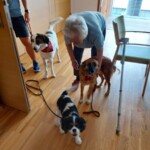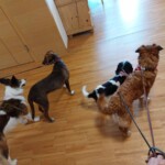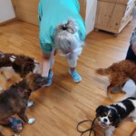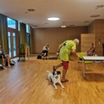 -wir übten den Rückruf-der schon recht gut klappte, weiters machten wir ein paar Aufmerksamkeitsübungen, wir trainierten das Signal “Schau” und natürlich durften die Welpen ausgiebig in zwei Gruppen nach Größe und Energieniveau aufgeteilt-spielen ![]()