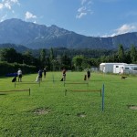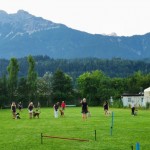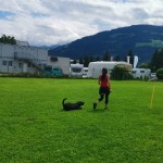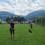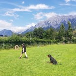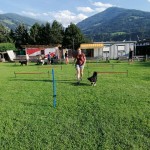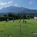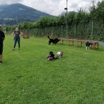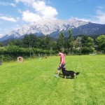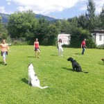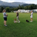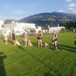 Weiters übten wir Sitz und Platz, die Ruhe Decke und dem Welpen Führung geben in ‘brenzligen Situationen’