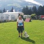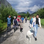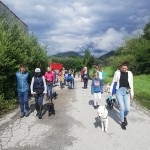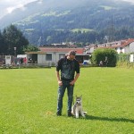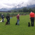 Wir übten heute neben den üblichen Grundkommandos auch das Kommando ‘hinter mir’-die Hunde übten, an einem schmalen Weg hinter uns zu gehen, sehr praktisch fürs Bergabgehen auf steilem Gelände 🙂
