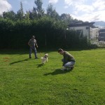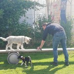 Natürlich gabs auch eine Spieleinheit in zwei Gruppen und danach gings ab in den Hundepool 🙂 .