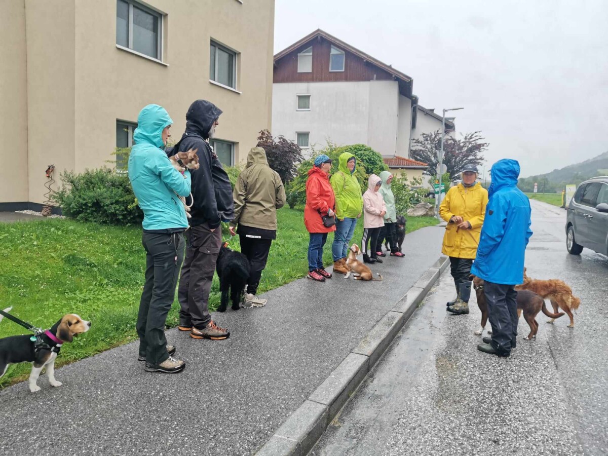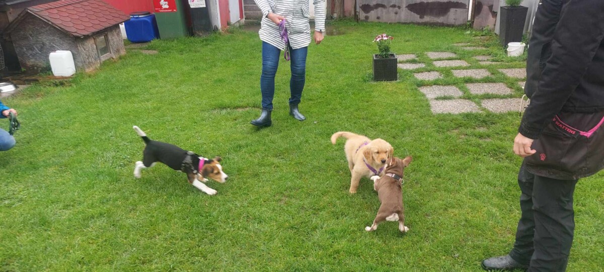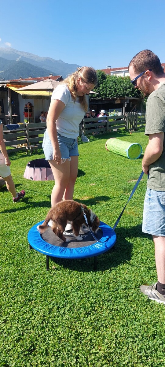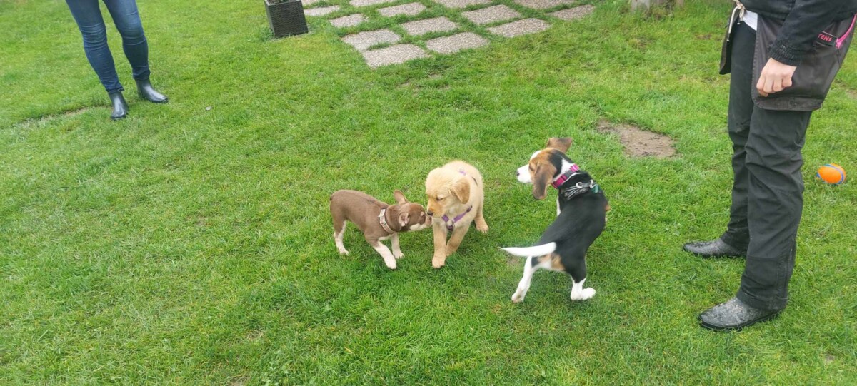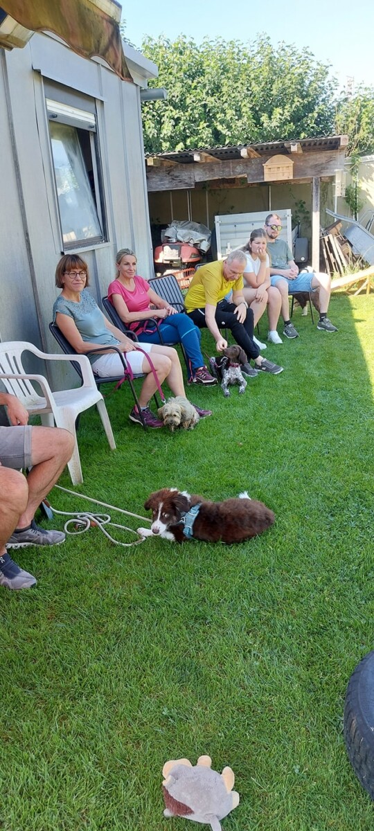 Eine bunt gemischte Welpengruppe, sehr motivierte Welpenführer und ein paar Kinder waren mit dabei, die wir gleich als Ablenkung eingebaut haben-der Welpe muss sich zurücknehmen, wenn die Kinder an ihm vorbeilaufen