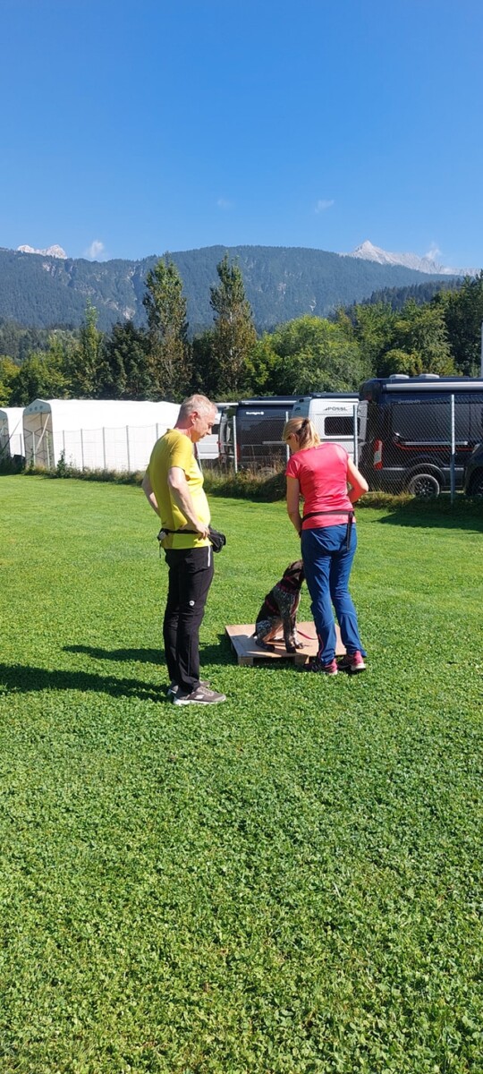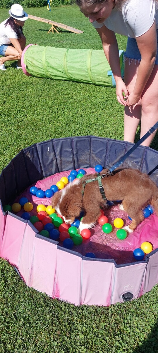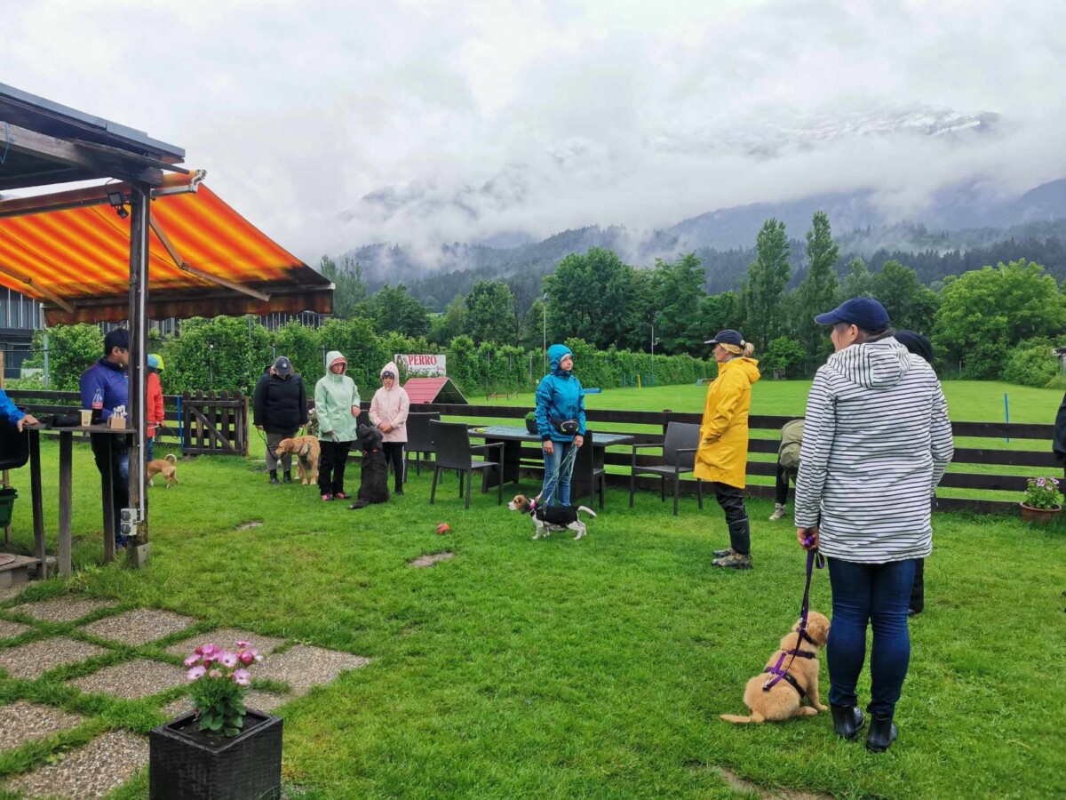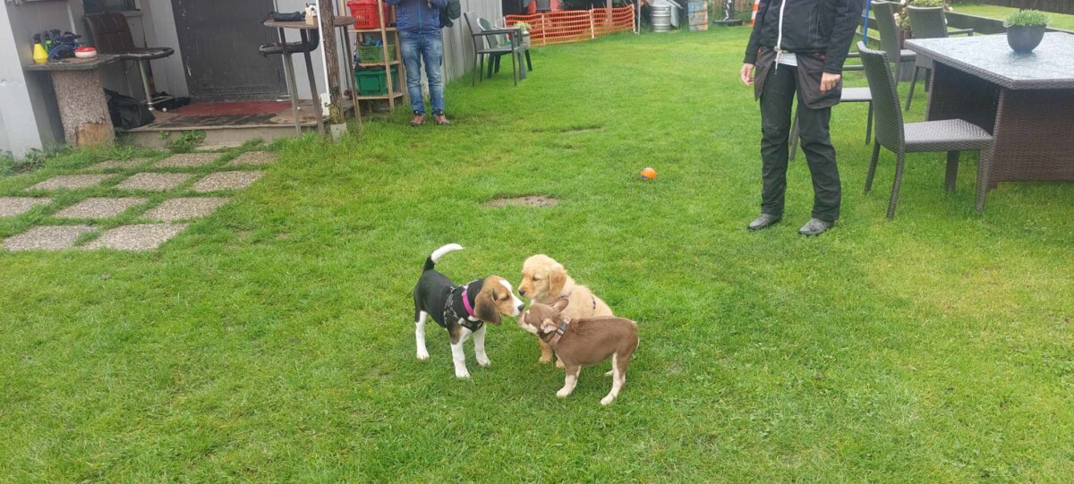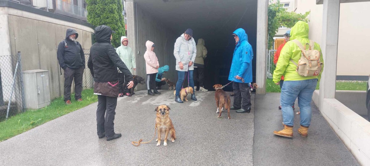 Eine bunt gemischte Welpengruppe, sehr motivierte Welpenführer und ein paar Kinder waren mit dabei, die wir gleich als Ablenkung eingebaut haben-der Welpe muss sich zurücknehmen, wenn die Kinder an ihm vorbeilaufen